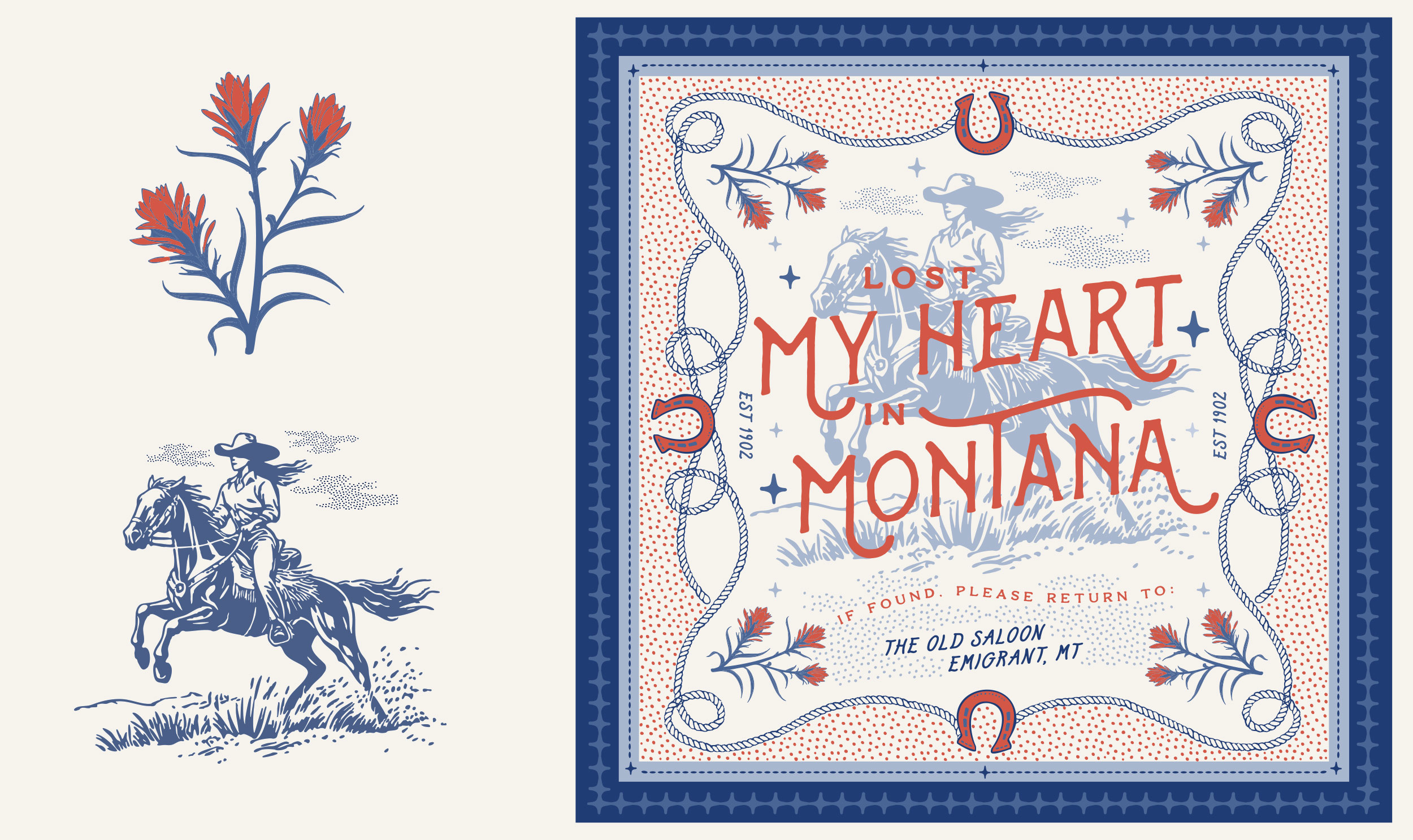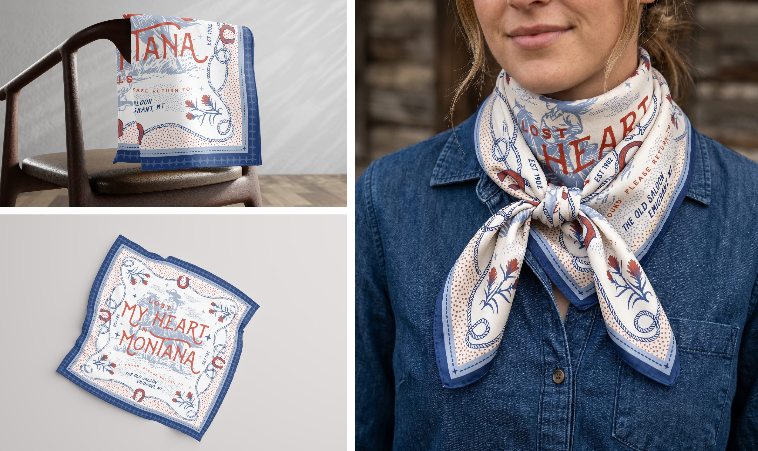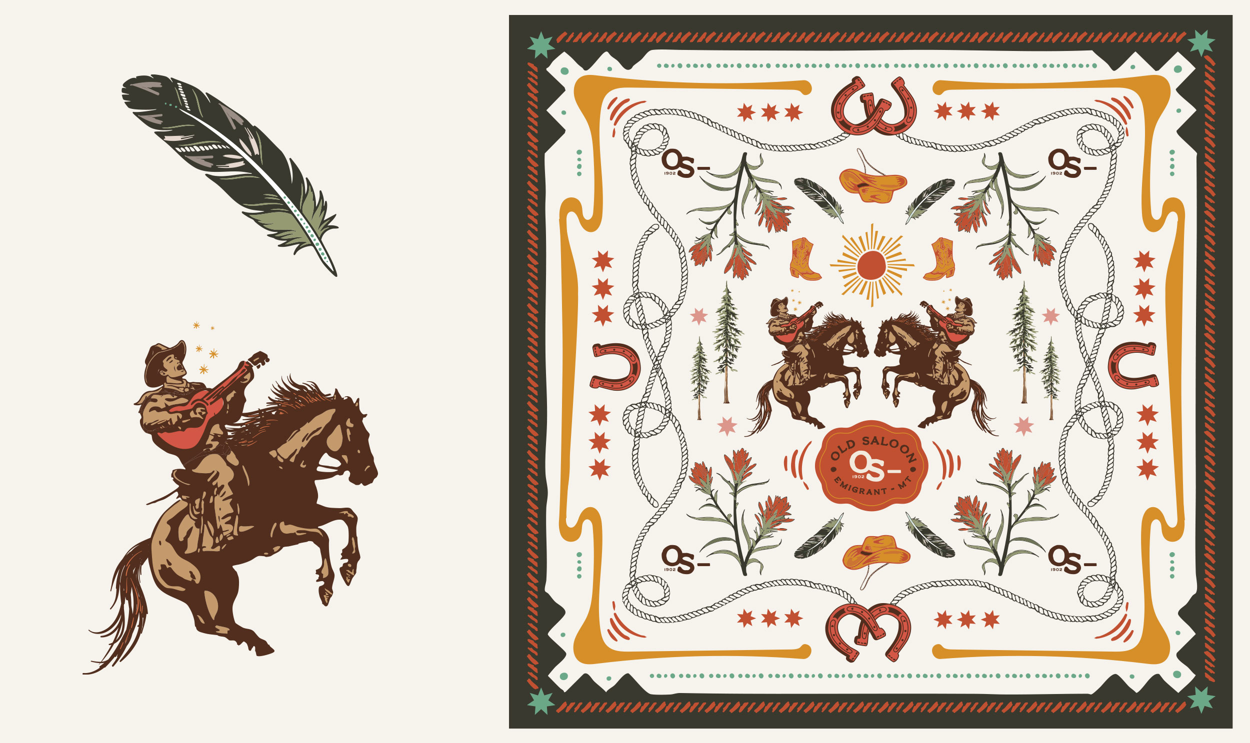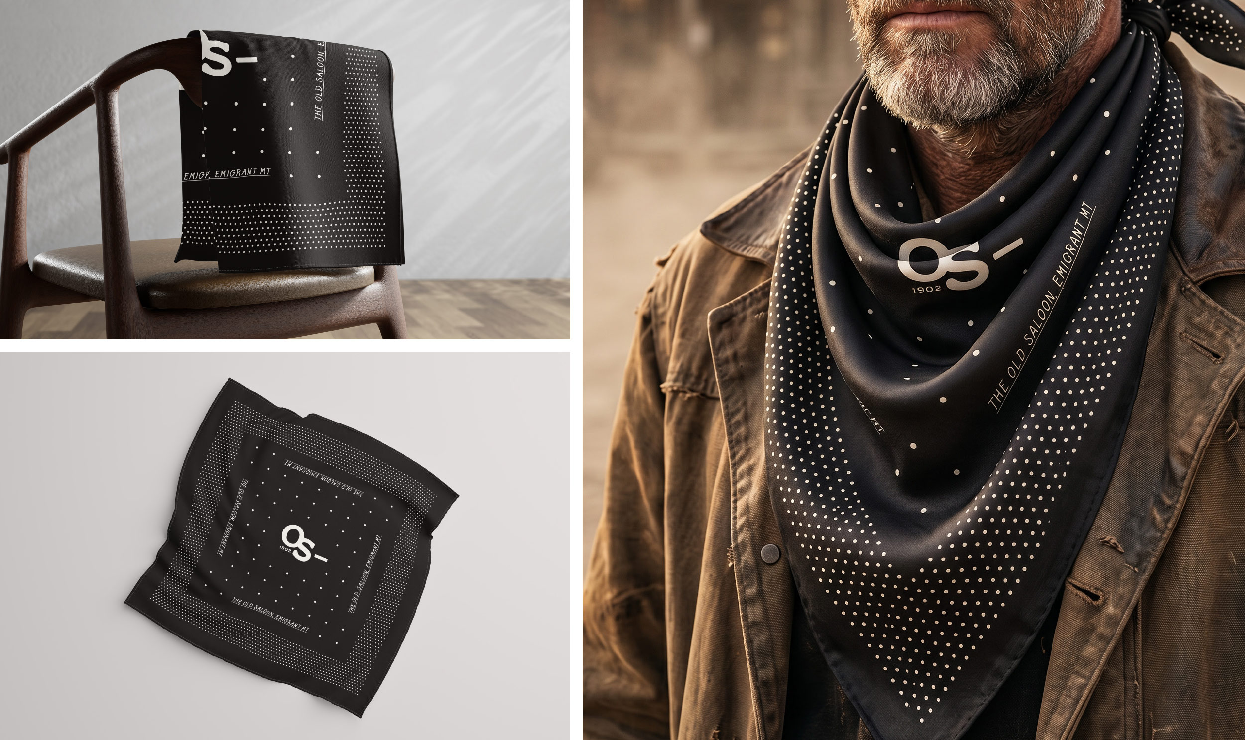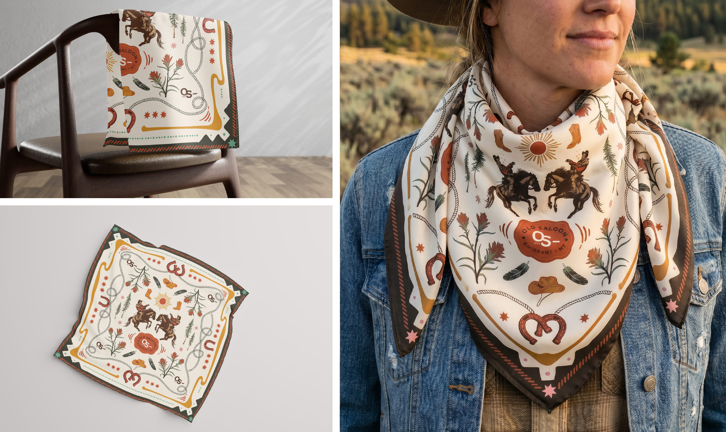Custom bandana / wild rag designs for The Old Saloon’s 2026 Apparel series.